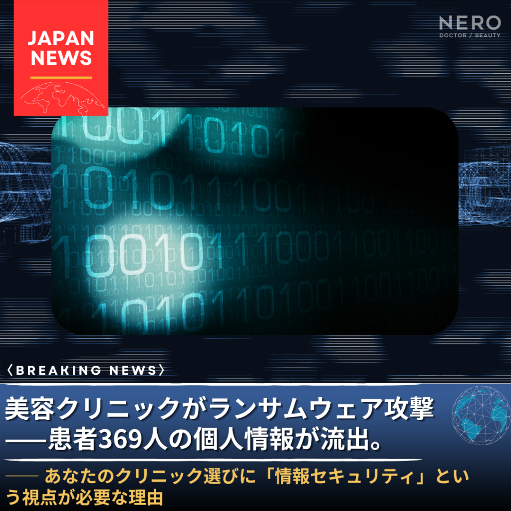 美容クリニックがランサムウェア攻撃——患者369人の個人情報が流出。 あなたのクリニック選びに「情報セキュリティ」という視点が必要な理由