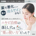 ニキビやニキビ跡治療での“映え施術”はあくまで補助的な存在で、本気のニキビ跡治療はクリニックでの診療が必要となるケースが多いようです。
